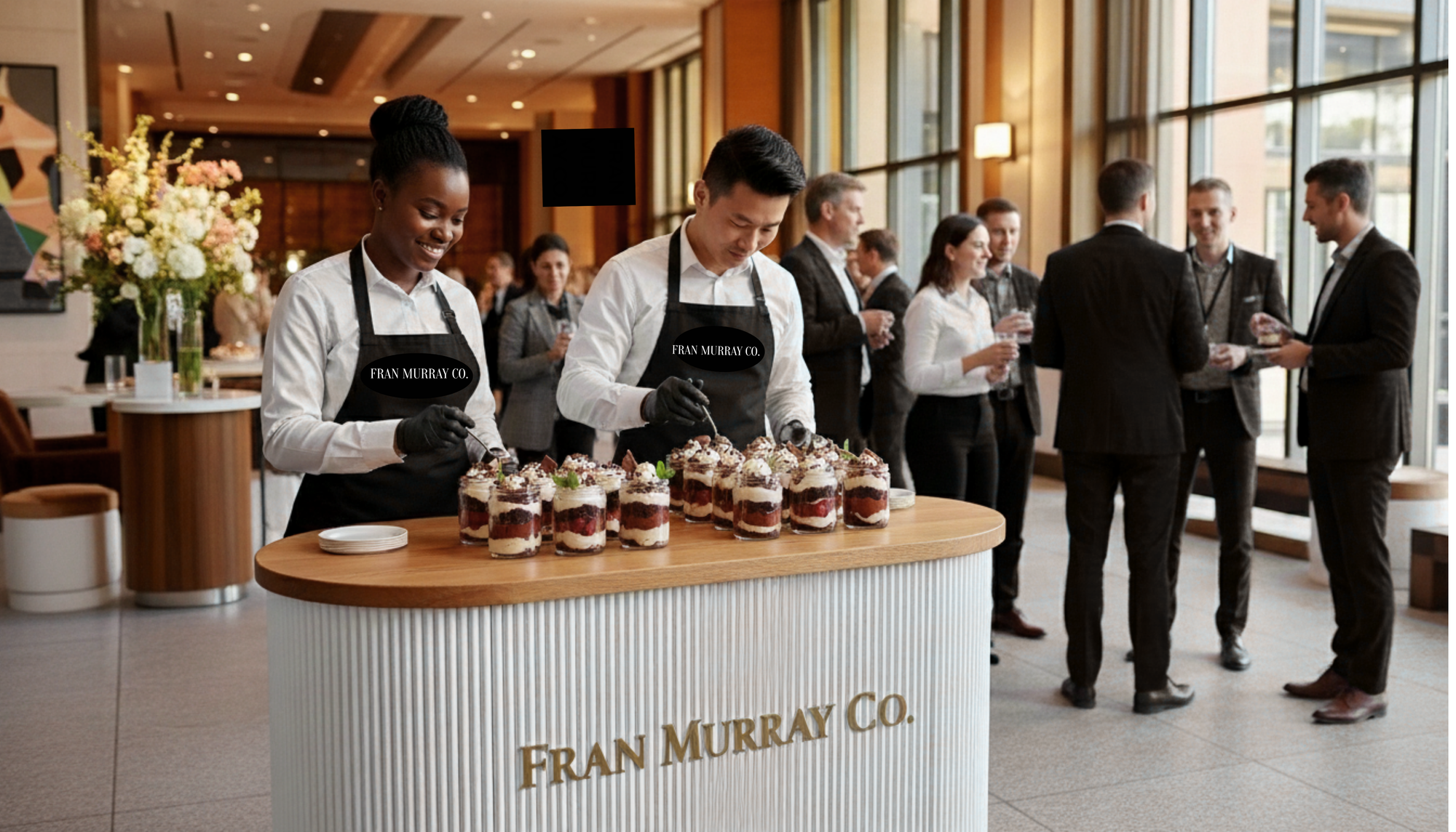 Menu, signage, and styling aligned to your guidelines (tasteful gold accents).